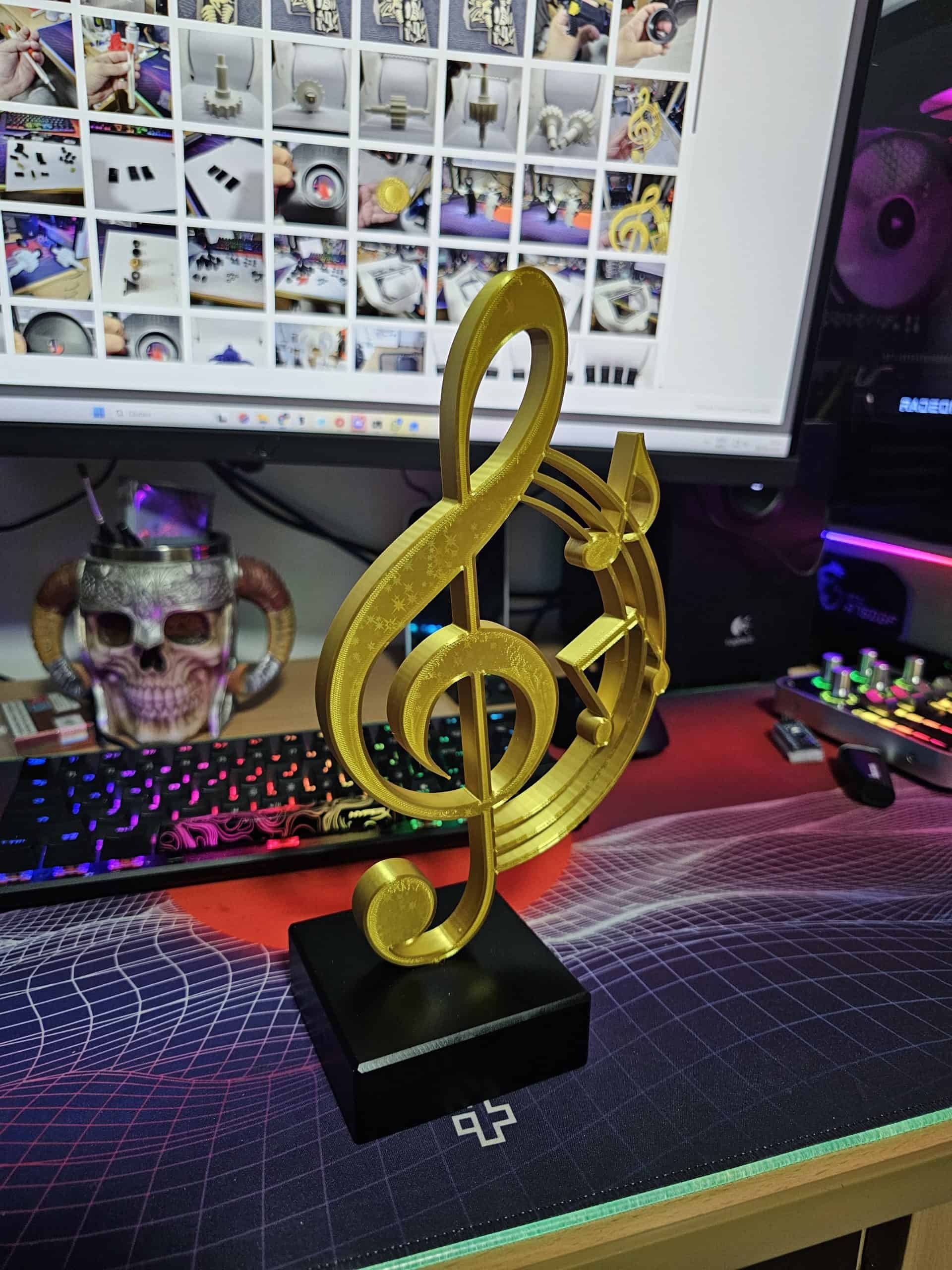 Acest trofeu Music are o înălțime totală de 23 cm, inclusiv baza, fiind conceput pentru a oferi un aspect elegant și profesional.
